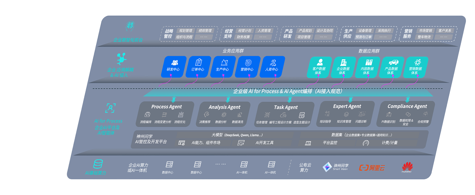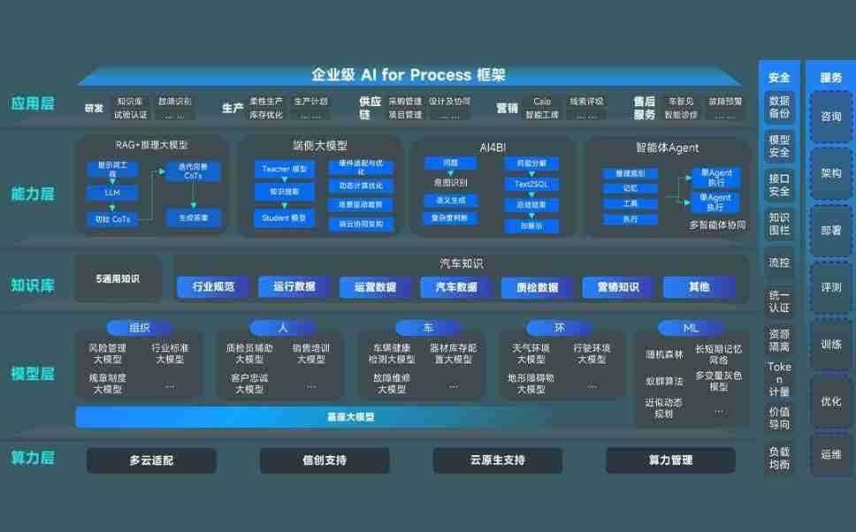 端到端的一站式AI工作空间深度融合了从企业战略规划到日常经营的全流程业务板块,,,,定向解决车企内部领域多、、部门多、、链条长、、、场景碎片化等难题,,,支持车企快速构建以AI为核心的生产力写作体系,,,实现任务执行与AI能力的无缝集成与交互